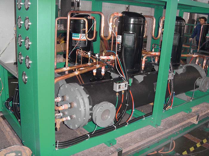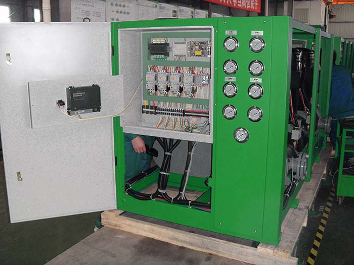 故障分(fēn)析:空(kōng)氣換熱(rè)器(qì)散熱(rè)不(bù)良,清洗空(kōng)氣換熱(rè)器(qì);水(shuǐ)流量不(bù)足,清洗'過濾器(qì);制(zhì)冷(lěng)劑注入量不(bù)足,檢漏并注入定量工(gōng)質;風(fēng)機(jī)電(diàn)機(jī)壞,蒸發器(↑qì)結霜嚴重;管道(dào)保溫不(bù)好(hǎo),重新給管道(dào)做(zuò)保溫;機(jī)組冷(lěng)媒系統有(yǒ u)堵塞,檢測堵塞部件(jiàn);壓縮機(jī)問(wèn)題,更換壓縮機(jī)。